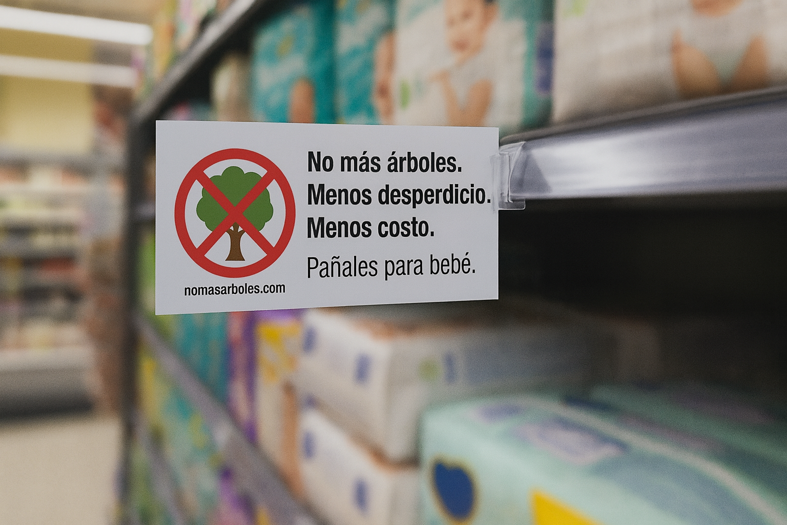 “Este pañal cuesta menos porque no destruimos un bosque para fabricarlo.”