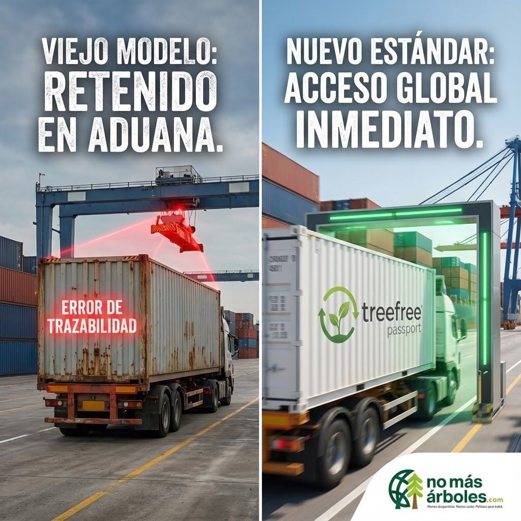 Mientras la pulpa enfrenta bloqueos, multas y exigencias de trazabilidad bajo leyes globales como EUDR, TreeFree Core® circula sin restricciones. Es químicamente exento de auditorías forestales.